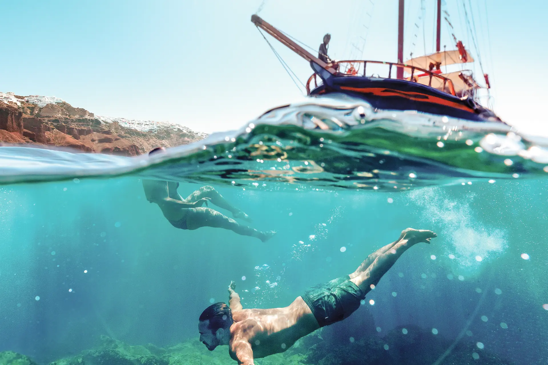 Rise and shine, Greek Island travellers! The island of Santorini won't explore itself. Today is your day to take a swim at Perissa Beach, eat the local specialty of fried tomato balls known as domatokeftedes, or roam and explore. You can even opt to take a visit to incredible Oia followed by a winery tour.